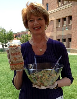 It was hot, hot, hot in Fort Collins, Colorado, this past weekend but that didn’t stop the Colorado Chapter of Les Dames d’Escoffier from selling their culinary cast-offs at a garage sale to raise scholarship funds for deserving culinary students. It was fascinating to see what emerged from the depths of these ladies’ pantries! We also offered culinary demonstrations, so I demonstrated a delicious whole grain sorghum salad, using Bob’s Red Mill sorghum, and it was a hit. Four lucky winners went home with a bag of grain*, as well.